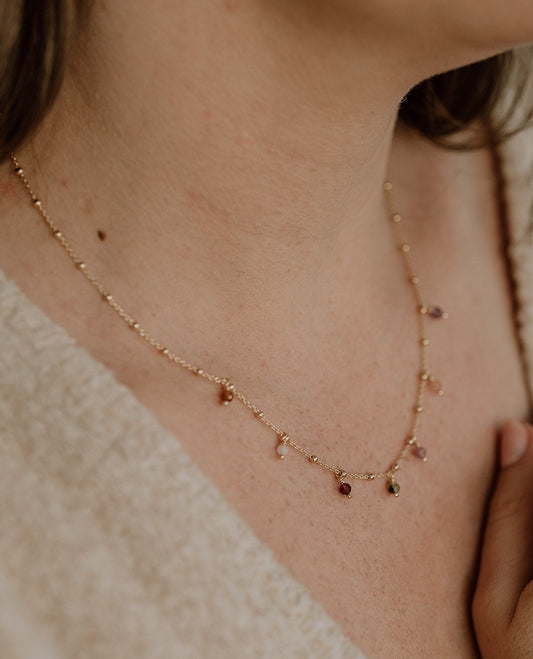 Cleo mit Edelsteinen | zarte Kugelkette mit Edelsteinen